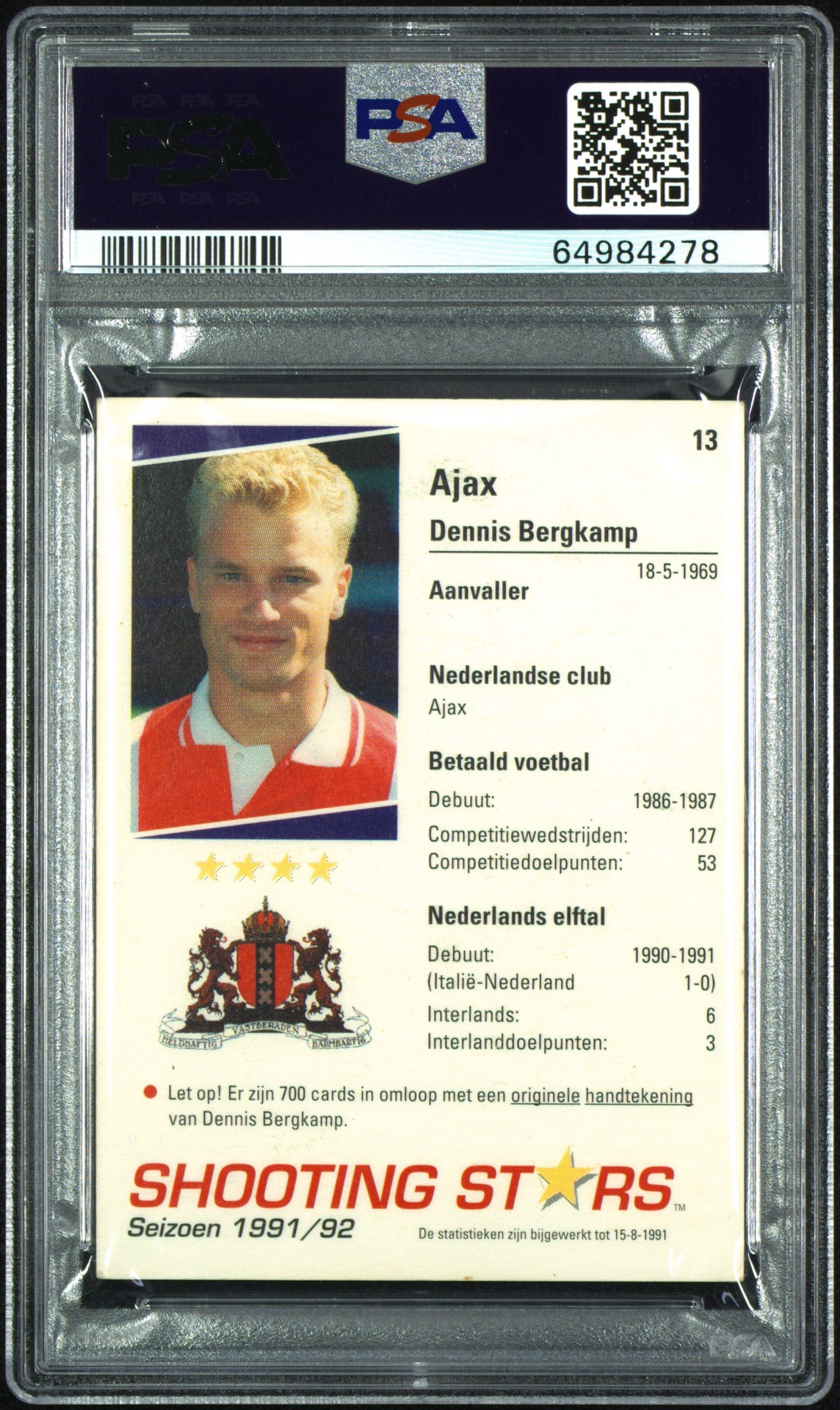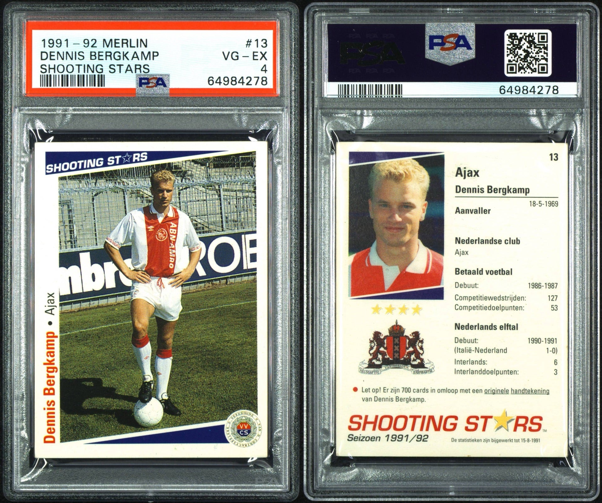 1991 - 92 Merlin Dennis Bergkamp shooting stars ROOKIE PSA 4
