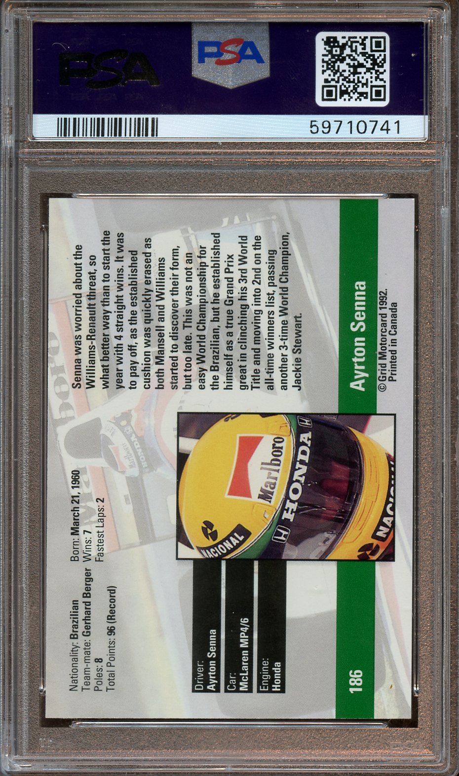 1992 Grid Formula One Ayrton Senna PSA 9
