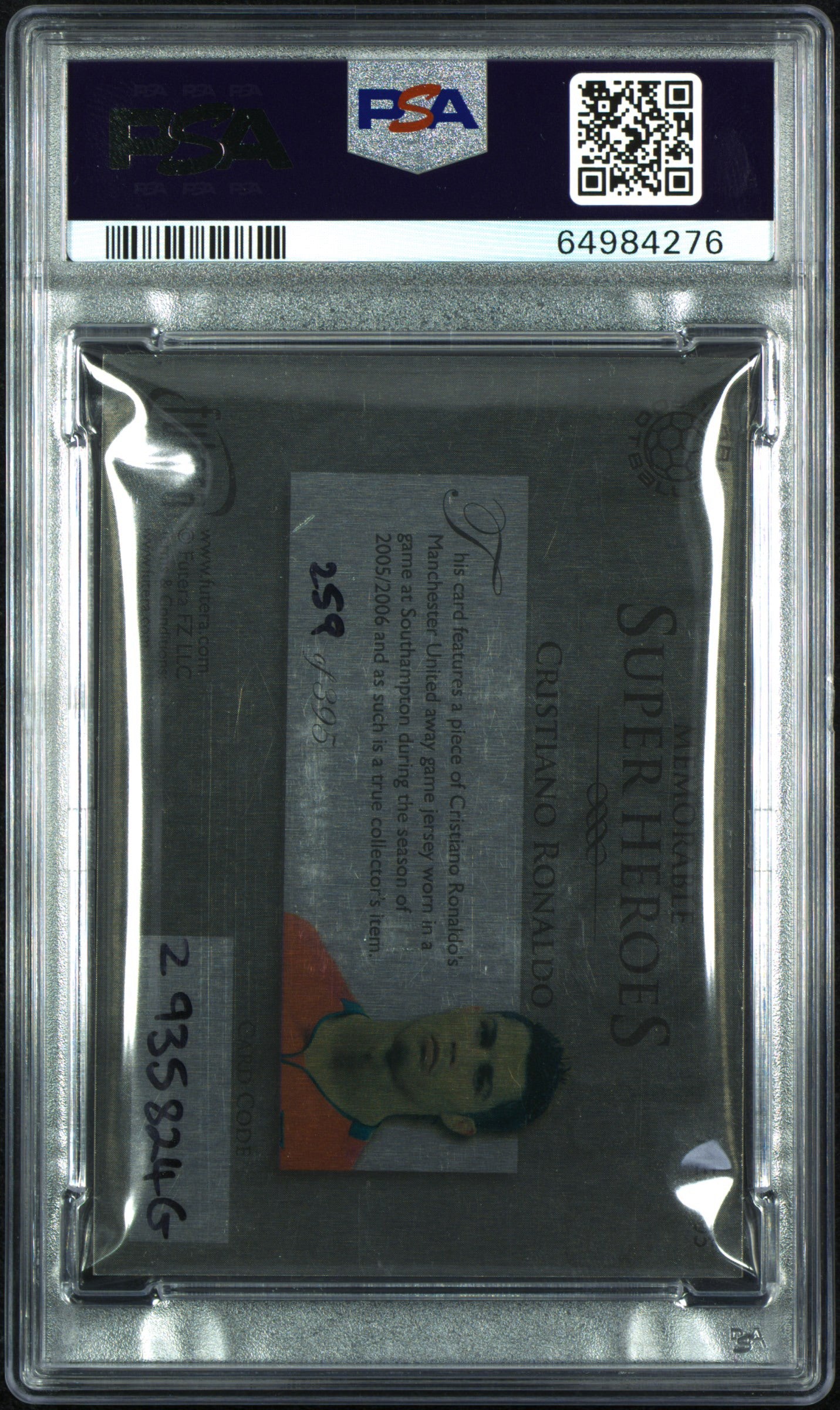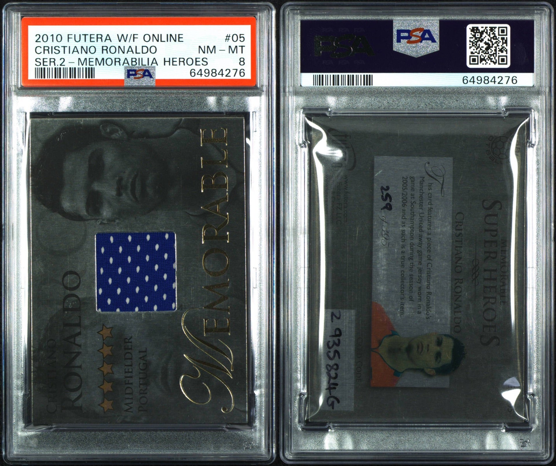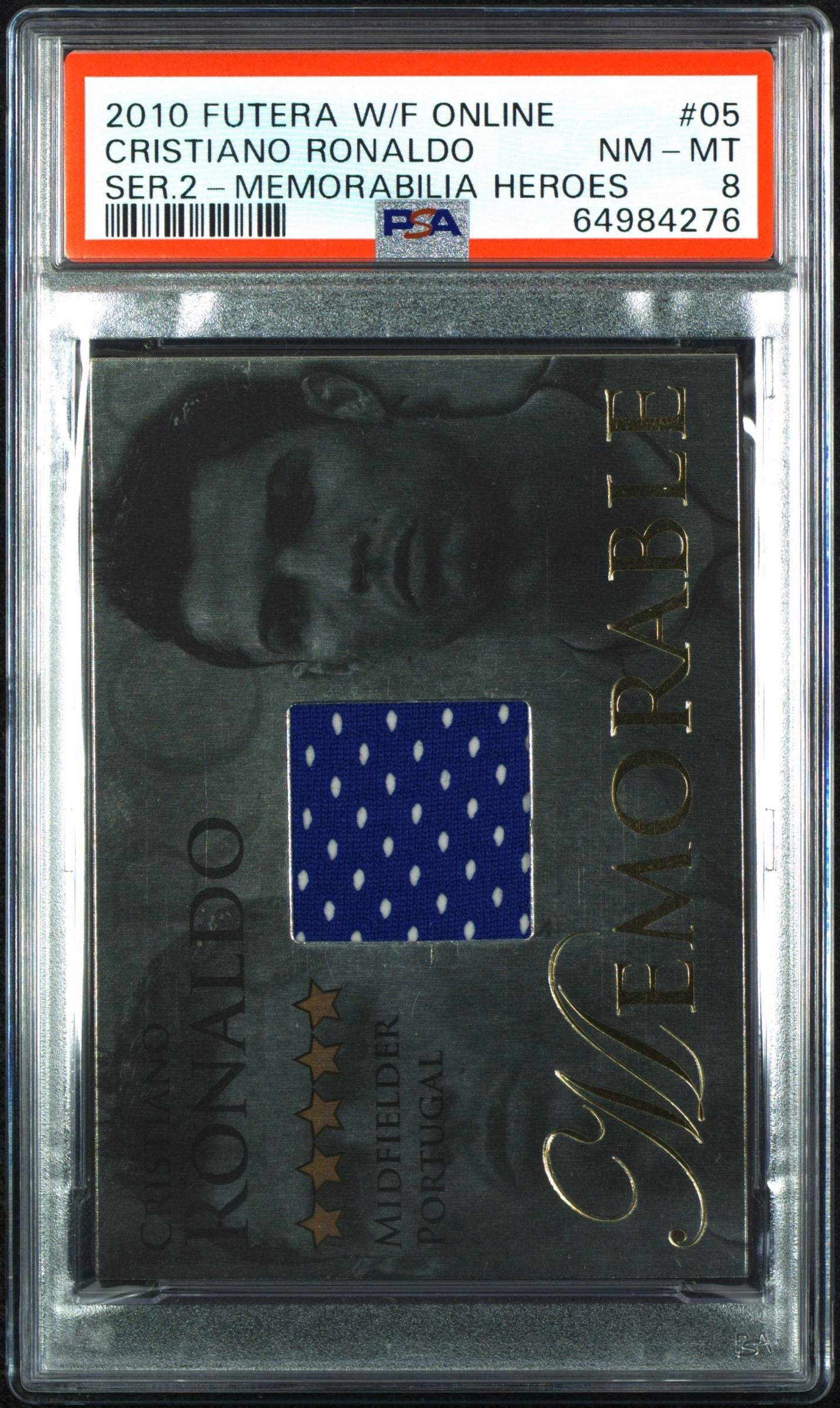 2010 Futera World Football Online Cristiano Ronaldo Patch 259/395 PSA 8