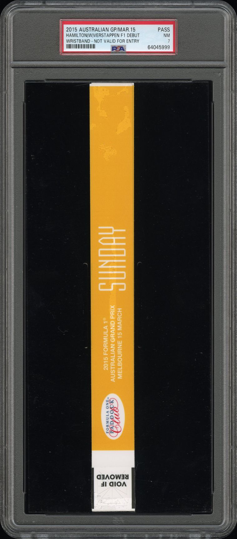 2015 Australian Grand Prix Wristband Pass Lewis Hamilton Verstappen Debut PSA 7