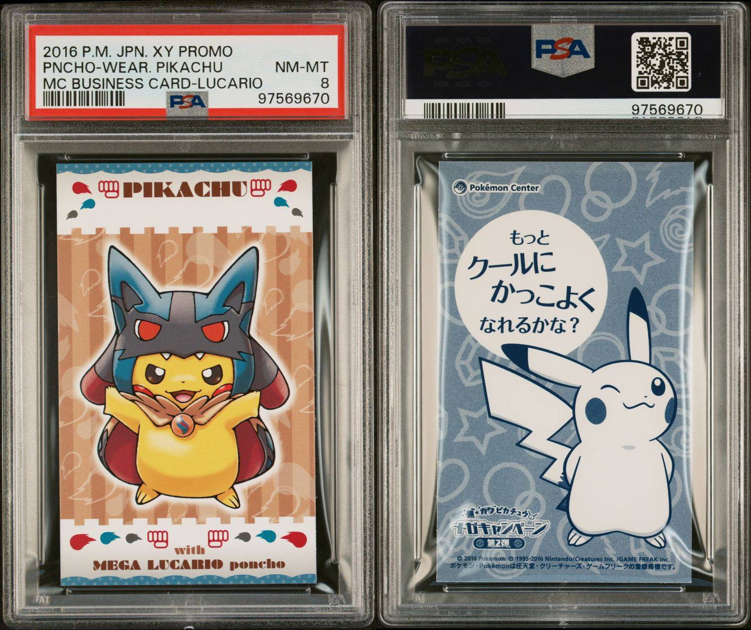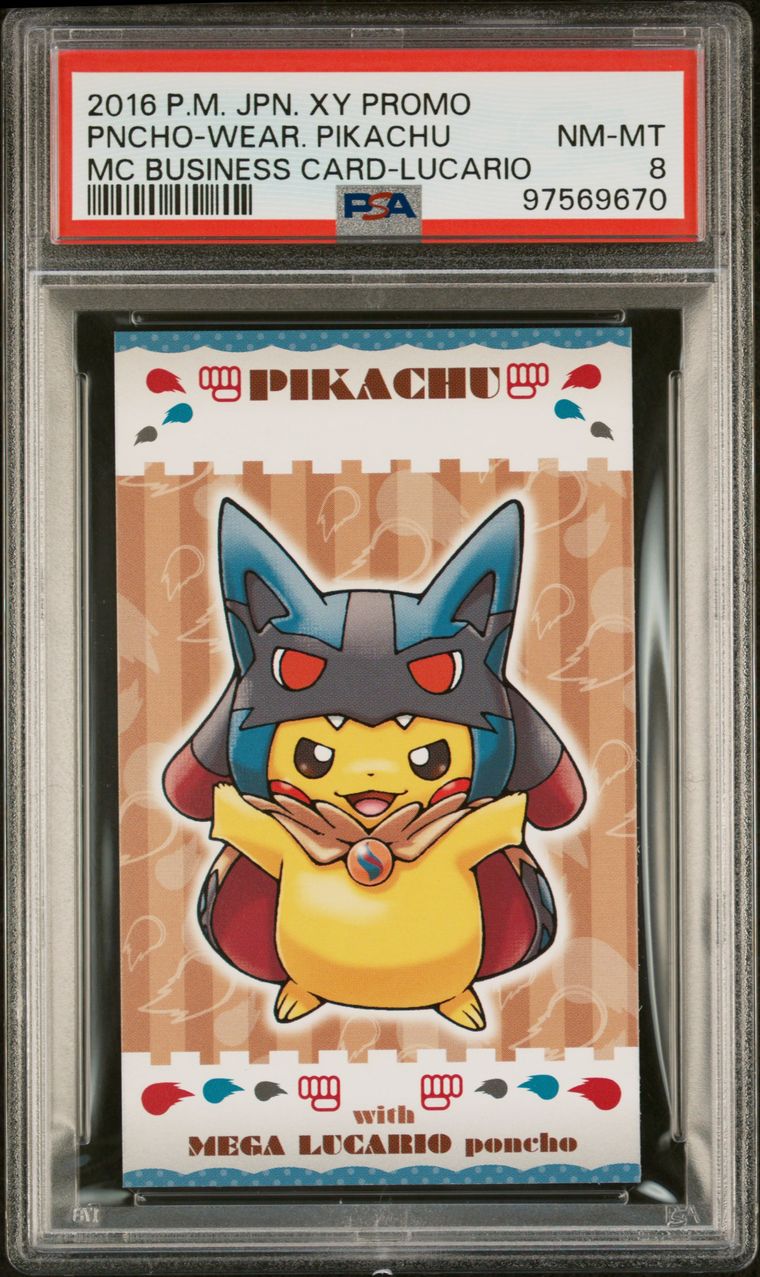 2015 JPN. XY Promo Poncho Wearing Pikachu Lucario PSA 8