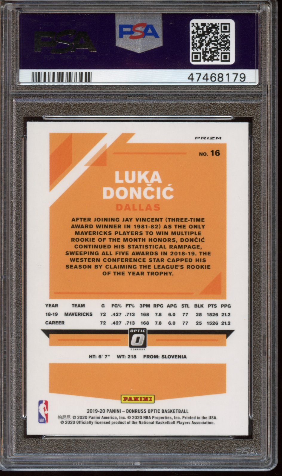 2019 Panini Donruss Optic Luka Doncic HOLO PSA 9