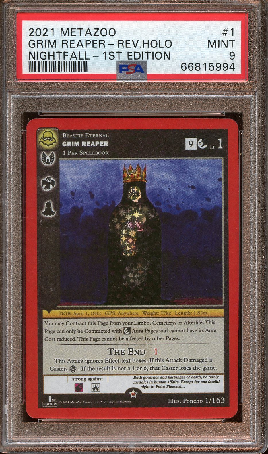 2021 MetaZoo Grim Reaper Rev. Holo Nightfall 1st Ed. PSA 9