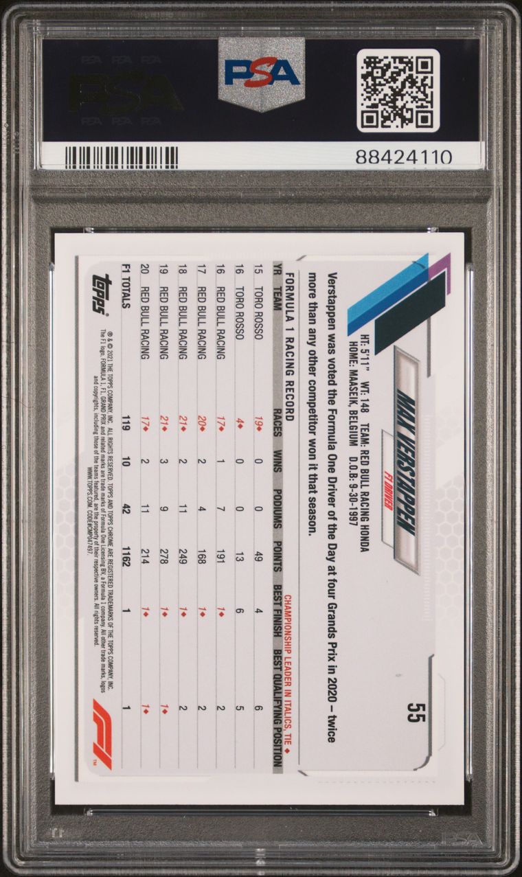 2021 Topps Chrome F1 Max Verstappen PSA 9