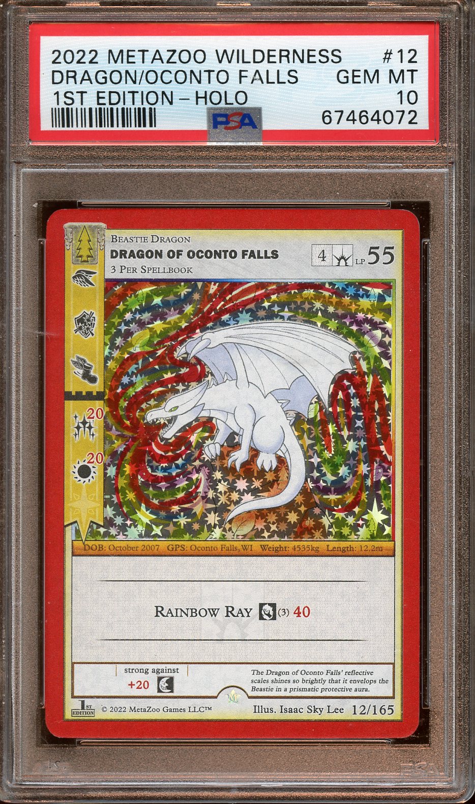 2022 MetaZoo Wilderness Dragon/Oconto Falls 1st ed. HOLO PSA 10