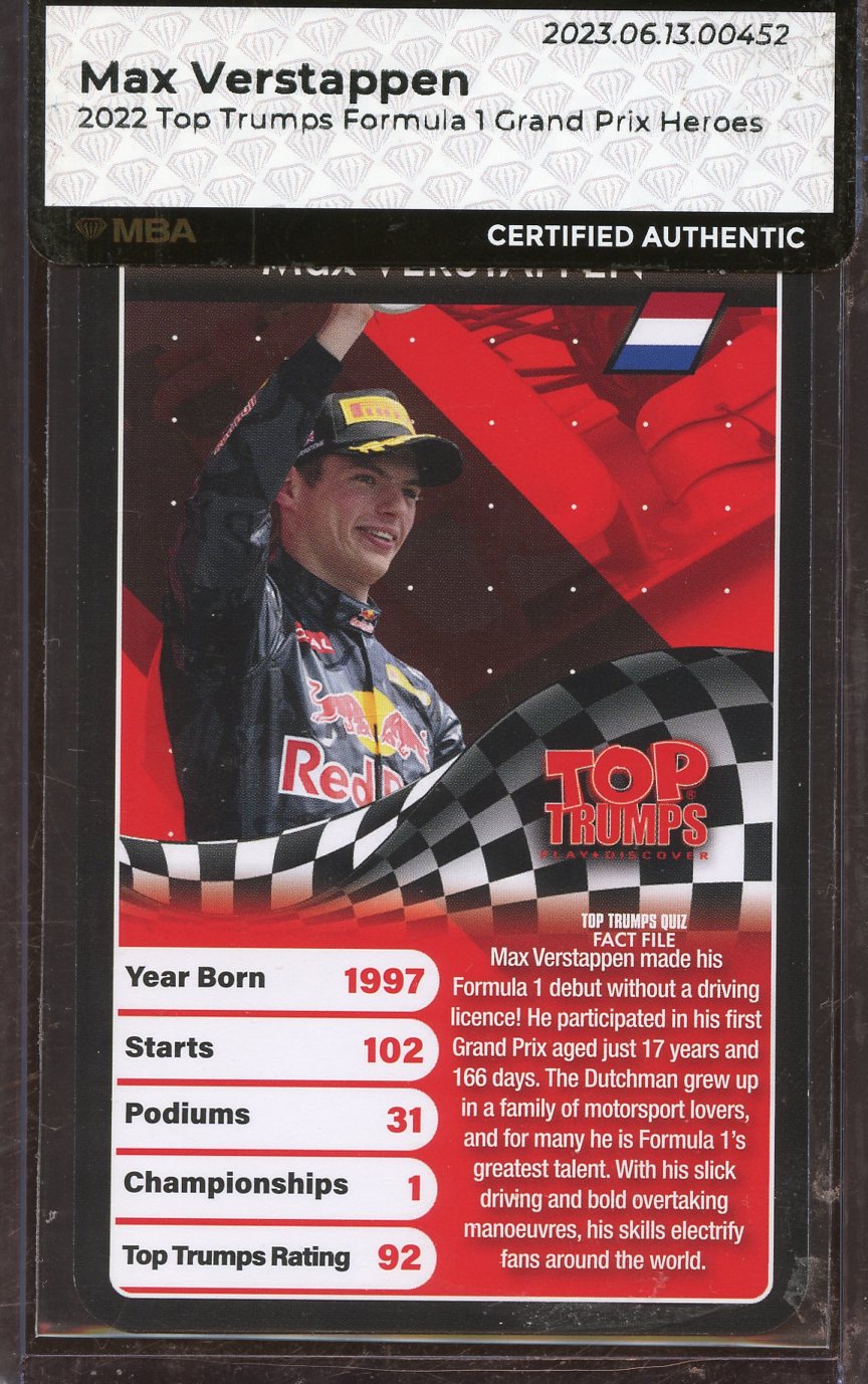 2022 Top Trumps Formula 1 Grand Prix Heroes Max Verstappen MBA Certified Authentic