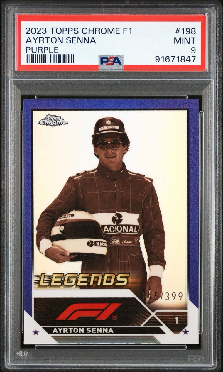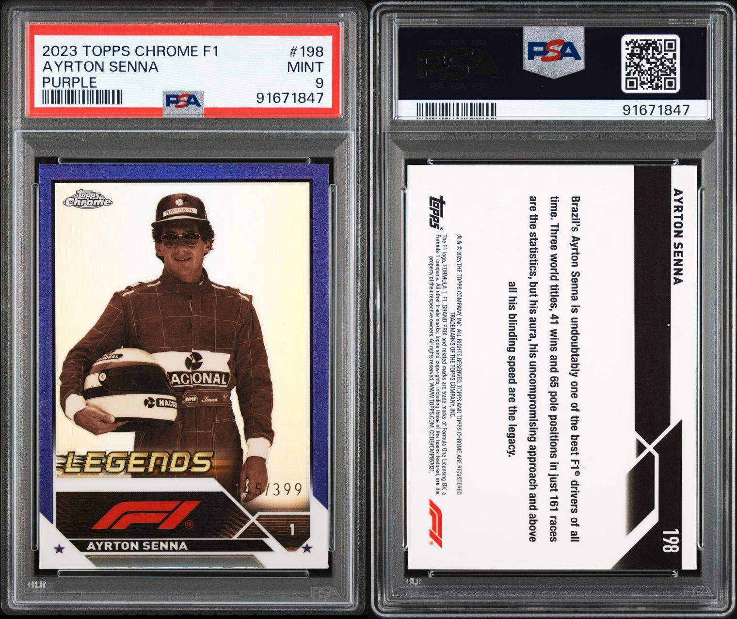 2023 TOPPS CHROME FORMULA 1 Ayrton Senna 145/399 Purple PSA 9