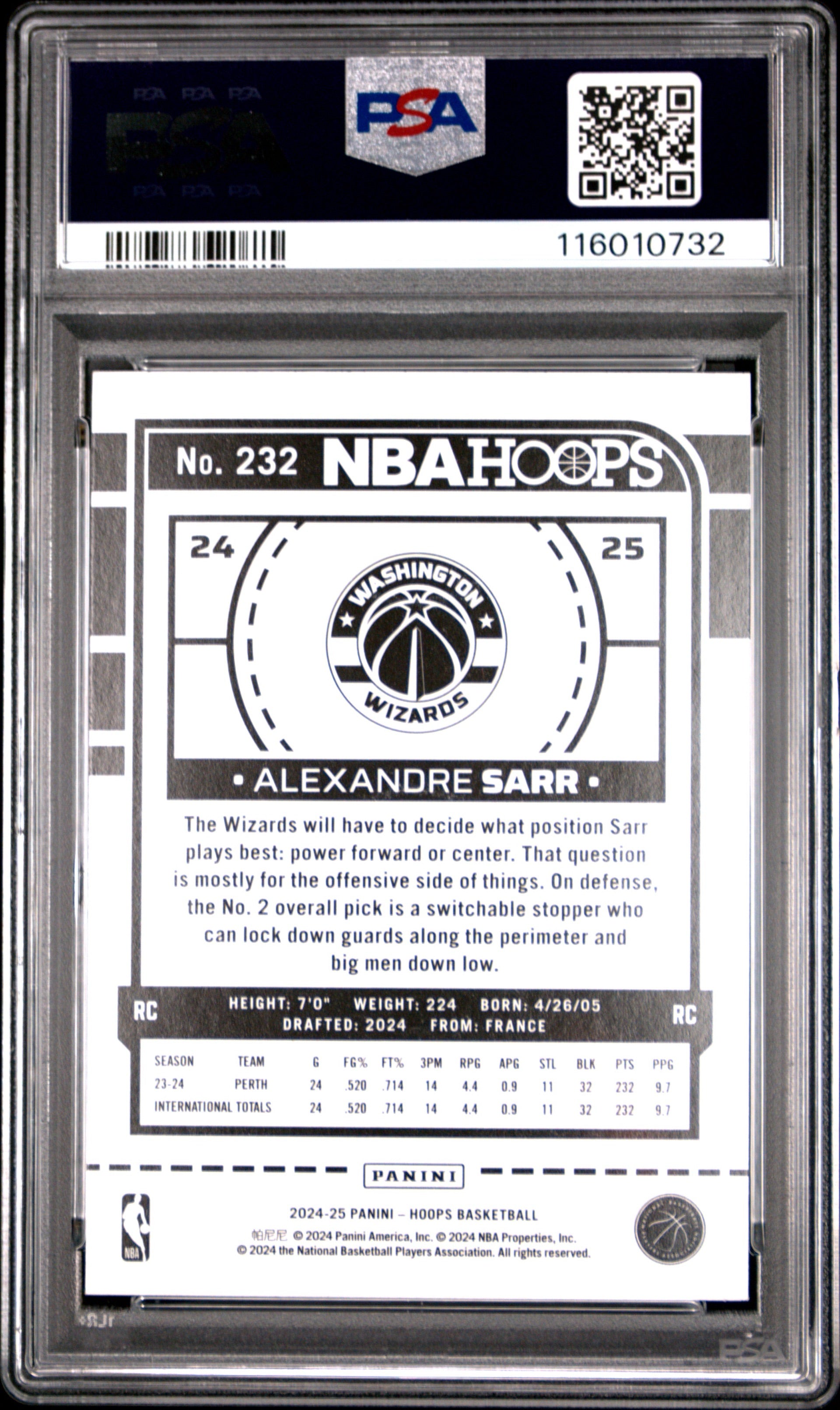 2024 Hoops Alexandre Sarr Wizards ROOKIE PSA 9