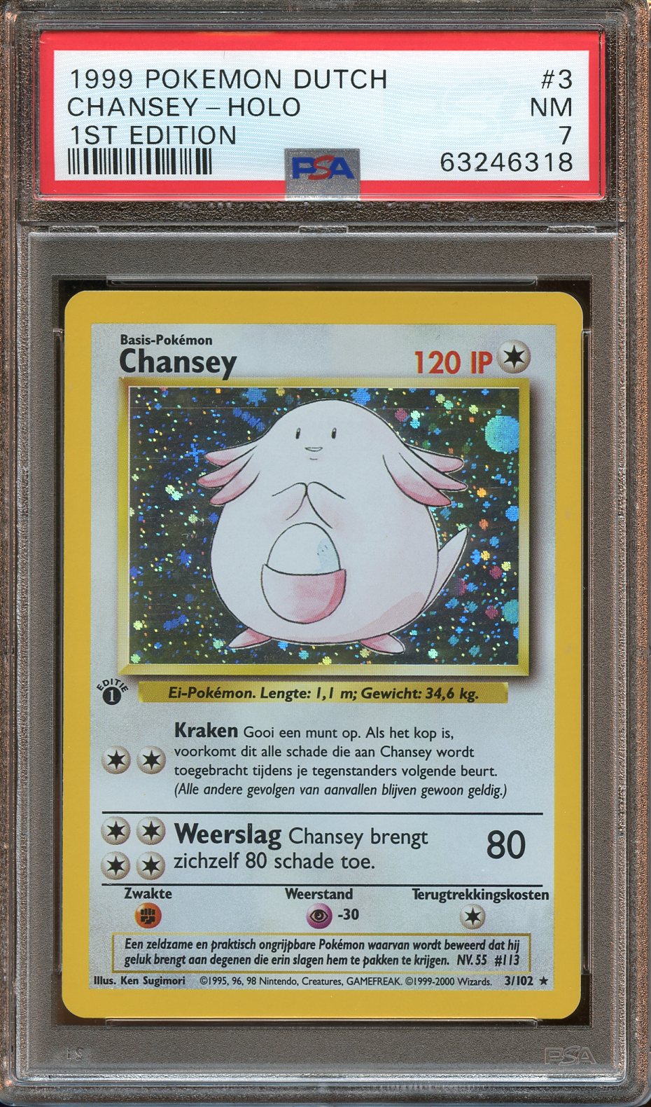 1999 Chansey DUTCH base HOLO 1st Ed. PSA 7